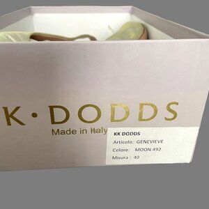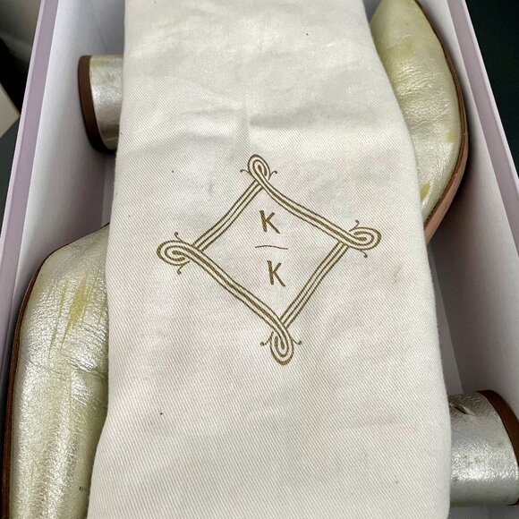 Shoes come in original box and dust bag. The US size for these shoes is approximately 8 / 8.5. I have wide feet and these shoes were fine for me to wear. They are in pre-loved condition with some marks and sadly a gash to the left heal (please carefully review pictures). Also sadly, the toe of the left shoe has two small lines from wear.