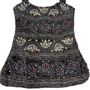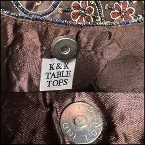 K&K VTG Table Tops Chocolate Brown Satin Floral Embroidered Sequin Shoulder Bag