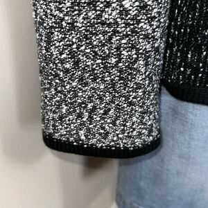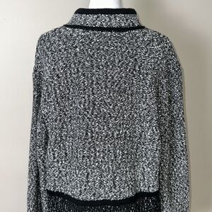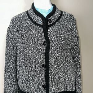 KL XL Two Tone Marbled Black White Boucle Cotton Blend Knit Button Front Jacket