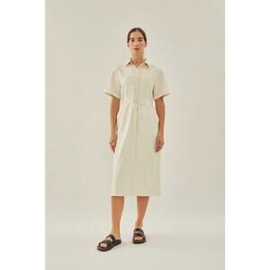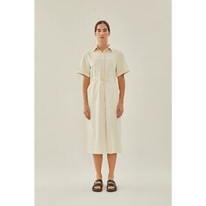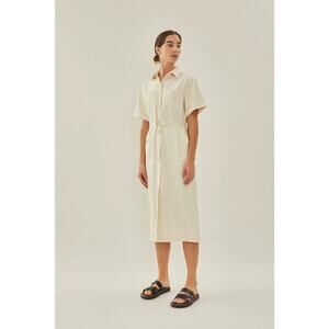 KLARRA STUDIOS NWOT BELTED BUTTON UP MIDI SHIRT DRESS IN IVORY Sz:Sm Ret$199
