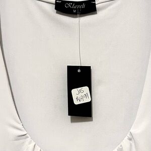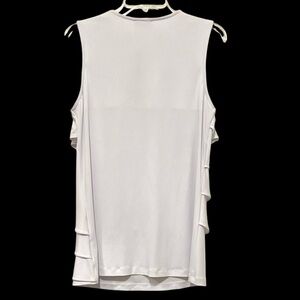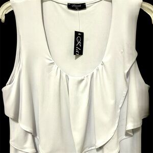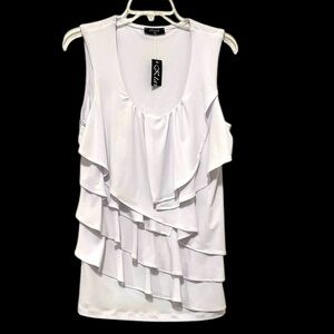 KLAVELI Sleeveless White Ruffled Tiered Blouse. NWT. Size Medium