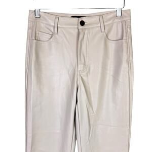 KLD Beige Cream Faux Vegan Leather High Waist Straight Leg Pants