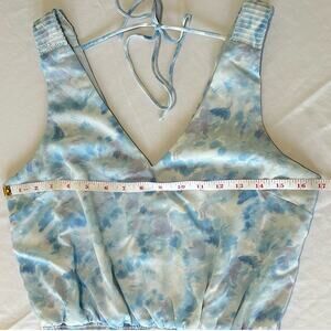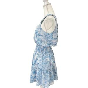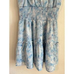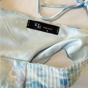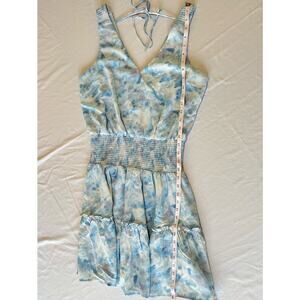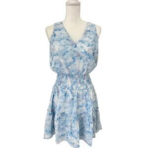 KLD Signature Blue Watercolor Sleeveless Smocked Mini Dress V Neck Size Medium