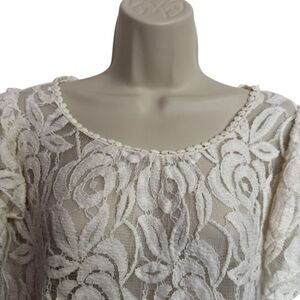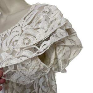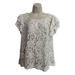 KLD Signature Cream Lace Ruffle Sleeve Top l Size M
