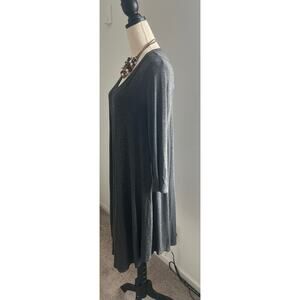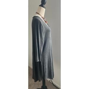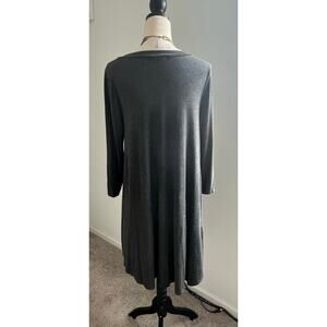 KLD Signature Gray Scoop Neck Long Sleeved MIDI Lightweight Swing Dress Sz L