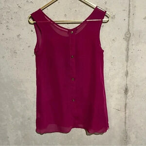 KLD Signature Magenta Sheer Tank Top Tunic Woman’s Size Small S Button Back