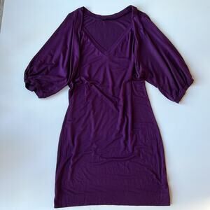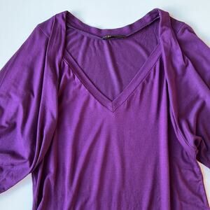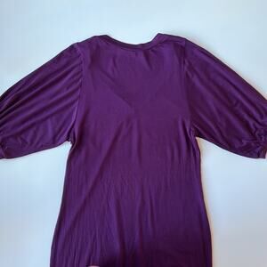 KLD Signature V Neck Drape Shoulder Puff Sleeve Loose Fit Mini Dress Purple L