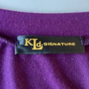 Lovely KLD purple loose fitting mini dress with elegant draped neckline and sleeves, perfect for an LSU game day!