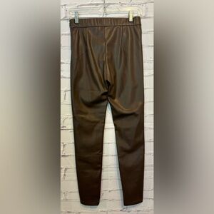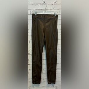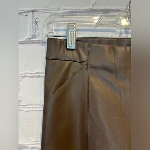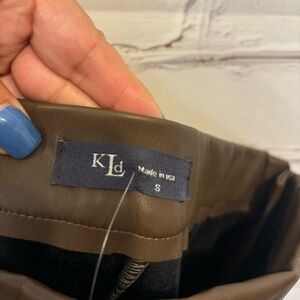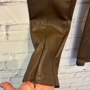 KLD faux leather moto Fall ankle and side zip stretch brown pants Side Small NWT