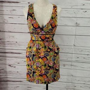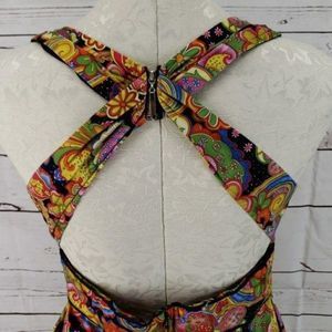 KLD signature statement dress size large paisley bold colored dress tank top padded bra padding lining with pockets