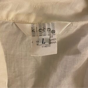 This elegant linen white button-down shirt with beautiful abalone buttons is perfect for any occasion. Its classic design offers a timeless look, making it a versatile addition to your wardrobe.