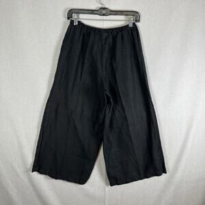 KLEEN Lagenlook 100% LINEN PANTS Size XS 0 2 Black Crop Wide Leg Comfort Pull On