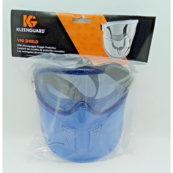 **Factory Sealed/New** Protect your eyes with the KLEENGUARD 18629 OB V90 Safety Goggles with Shield in Blue. These goggles feature polycarbonate lenses that provide droplet and splash protection. The removable face shield adds another layer of protection, making these goggles perfect for personal protective equipment (PPE) use in industrial or home settings. Designed with anti-fog lens treatment, these goggles ensure clear vision during use. The universal size and frame style make them suitable for a variety of face shapes and sizes. Whether you're in the facility maintenance and safety industry or need PPE for personal use, the KLEENGUARD 18629 OB V90 Safety Goggles with Shield in Blue are a reliable and comfortable option.