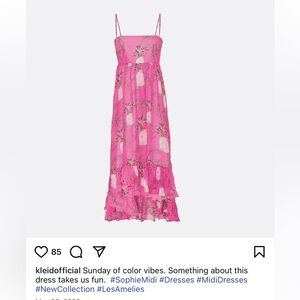 Elegant pink midi dress with floral print.