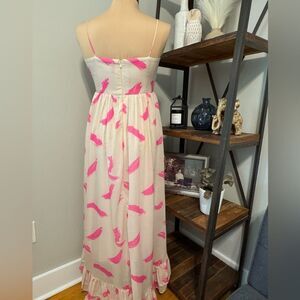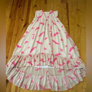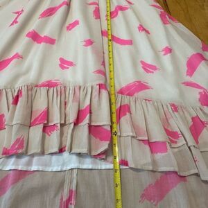 KLEID Long Cream Ivory/Pink High Low Ruffle Maxi Art Brush Stroke Women’s SZ LRG
