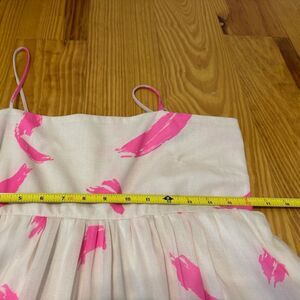 This beautiful KLEID maxi dress features a unique brush stroke pattern in cream ivory and pink tones. The dress has a square neckline and is sleeveless, making it perfect for a summer, fall, or spring occasion. The tiered accents and high-low dress length add a touch of elegance to this lightweight and comfortable dress.