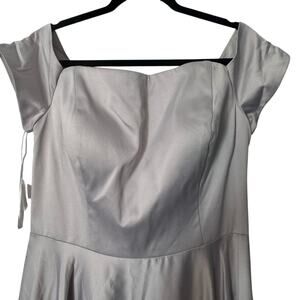 KLEINFELD BEAUTIFUL GREY SATINY OFF SHOULDER DRESS SZ 14 EUC