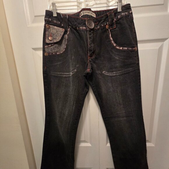 ** Signature "Klepton" small buttons/studs throughout the jeans