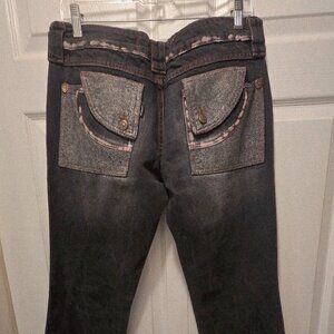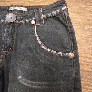 STYLE: Unisex Distressed Print 5 Pockets Black Jeans w/Decorative Accent Pockets