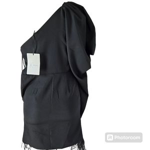 KLESIS BLACK ONE SHOULDER FEATHER MINI DRESS.