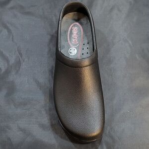 Polyurethane upper Slip-lasted construction Washable Boca is designed to meet the demands of chefs and restaurant workers. Its TRUBase® Outsoles with PURGrip® treads are lightweight, slip- and oil-resistant and can be cleaned with soap and water. Boca's TRUComfort® Insoles are removable, anti-microbial, latex-free, and odor-resistant. All this gives the Boca comfort that never quits. Excellent arch support and a closed heel guarantee a snug, secure fit. The Boca will keep you feeling your best, even for those long shifts. THIS ITEMS IS PRE-OWNED EXCELLENT CONDITION WITH ONLY LIGHT SIGNS OF WEAR IF ANY CHECK THE PICTURES