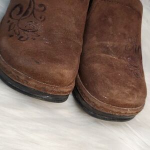 KLOGS MISSION MOCHA MOLE EMBROIDERED LEATHER SUEDE SHOES WOMENS SIZE 7M