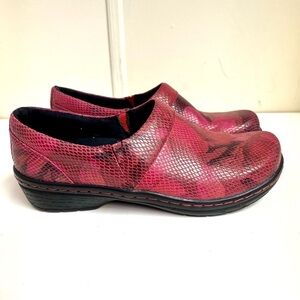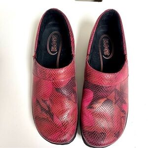 KLOGS Mission Work Women Slip Resistant Red Embossed Leather Clogs Tooled 10M