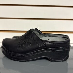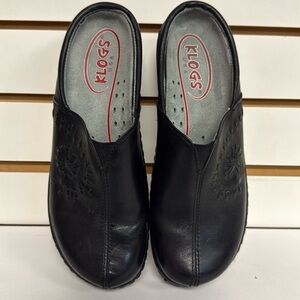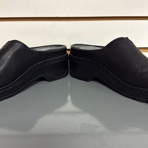 KLOGS PORTOFINO BLACK LEATHER SLIP RESISTANT PLATFORM CLOGS COMFORT FOOTBED SZ 7