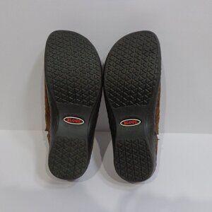 KLOGS Womens Brown Leather Suede Embroid Floral Mules Shoes Slip Resistant Sz 7M