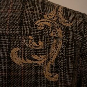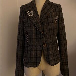 K/Lab Brown Plaid Blazer with Pink Stitching