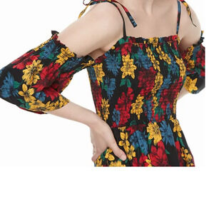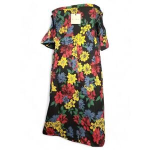 K/Lab Cold Shoulder Tie Strap Dress Tropical Floral Print Small NWT