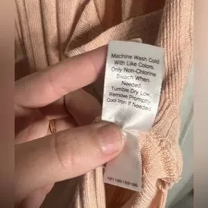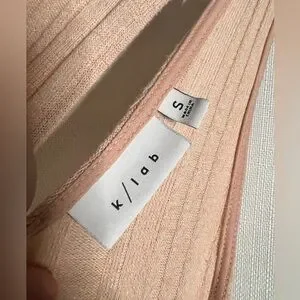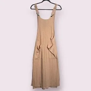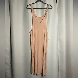 K/Lab Pink Ribbed Overall Style Dress. Blush, light peachy pink color. Stretchy ribbed knit fabric. Overall style. Dress with slits on each side. Front pouch pockets. Adjustable straps. Pretext for layering or beach cover up. Size Small.