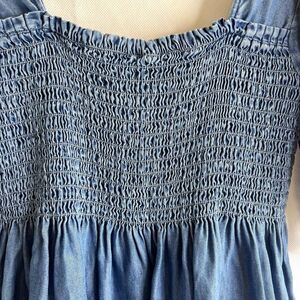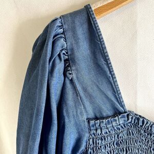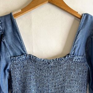 K/Lab Smocked Bodice Tencel Denim Blouse Size Small