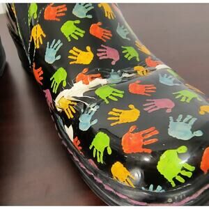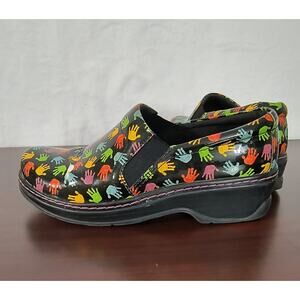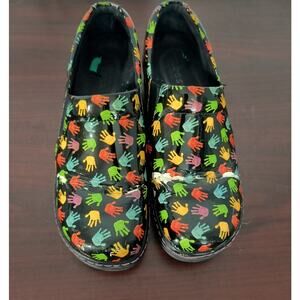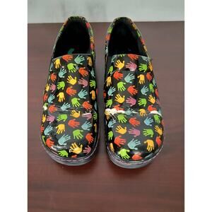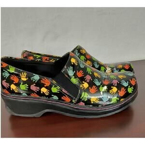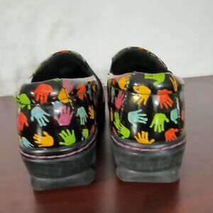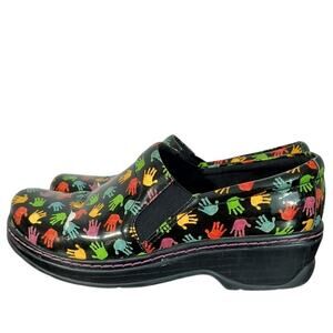 Klogs Slip On Shoes Women's Size 11M Black Multicolor Naples Hands Patent Leather Clogs