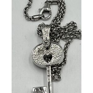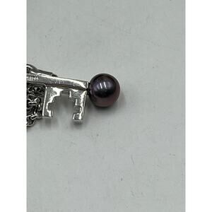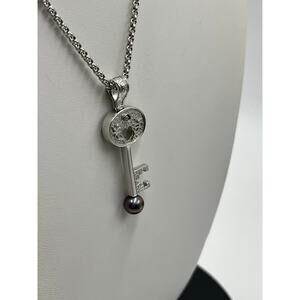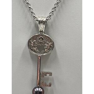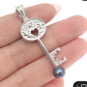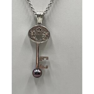 KM 925 Sterling Silver Real White Diamond & Tahitian Pearl Key Pendant