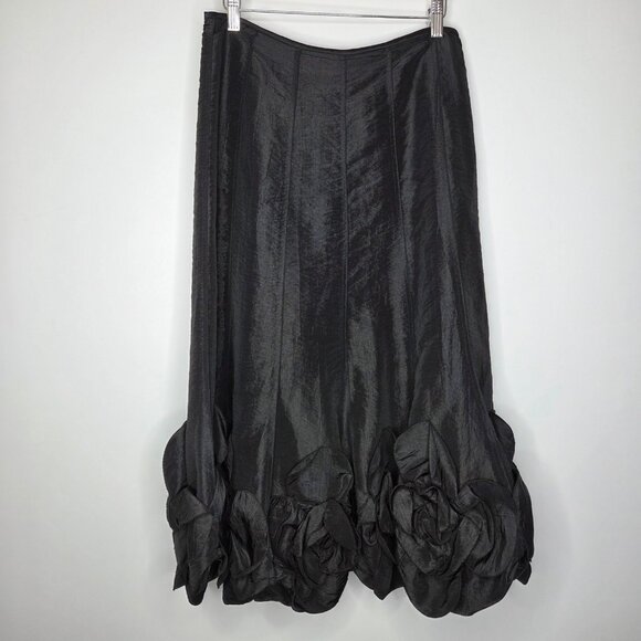 KM Collections Milla Bell Womens Black Ruffle Midi Skirt Size 8 Fairy Core Artsy
