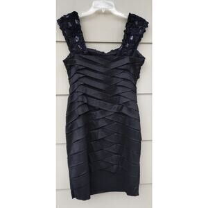 KM Collections by Milla Bell Mini Bandage Black Dress Size 10 Pleats Size 10