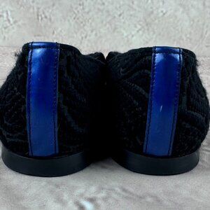 KMB women's pointed toe black fabric floral slip on flats size 10