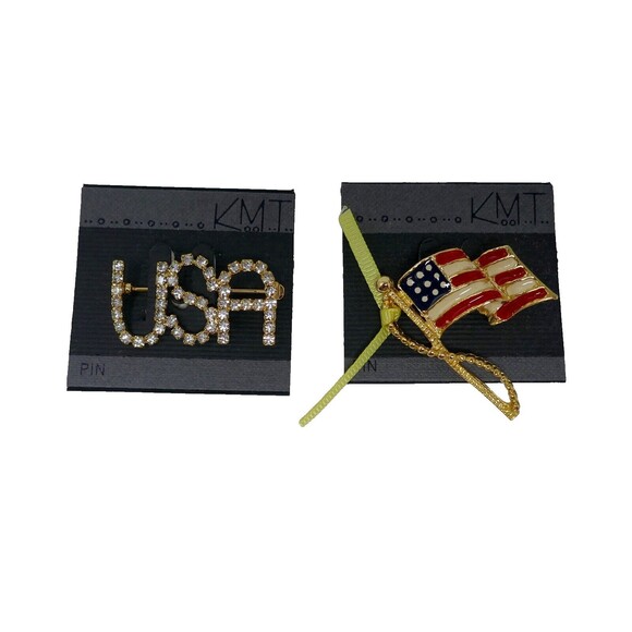 KMT Enamel USA Waving Flag with Yellow Ribbon and USA Patriotic Pins