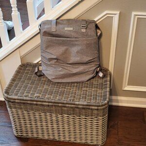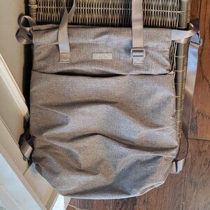 Lightweight tote. Neutral backpack. Minimalist backpack. Zippered partially hidden back pocket.