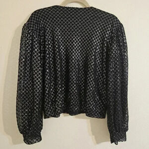 Excellent condition Size medium Cinched hem and cuffs Long sleeves Metallic diamond pattern