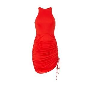 K.NGSLEY Ryan Red Ruched Sleeveless Bodycon Mini Dress Size Small