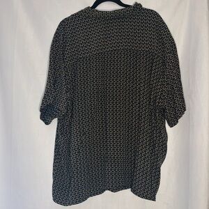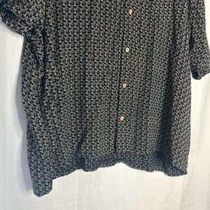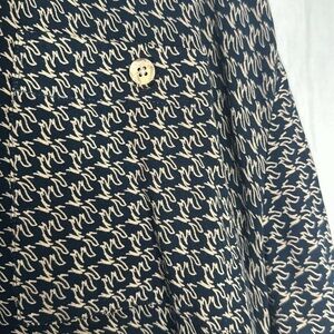 STYLE: Knights Bridge retro blue and tan wave print short sleeve button down, lightweight, vintage, 100% rayon