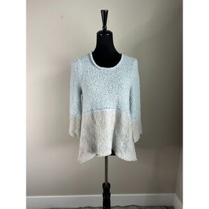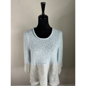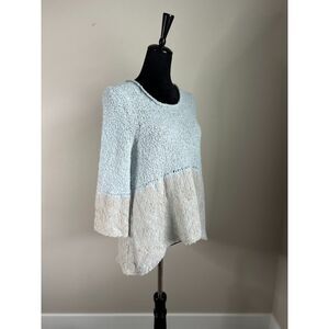KNIT & KNOTTED Women's Grey Blue Felted Lace Pullover Bell Sleeve Sweater Size M