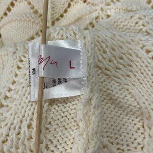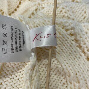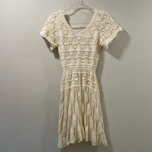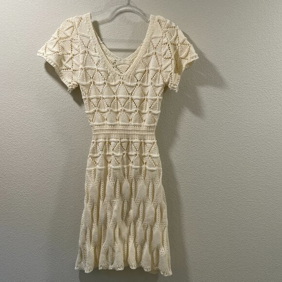 KNIT MIX Crochet Knit Mini Bodycon Short Sleeve Dress, Cream - L