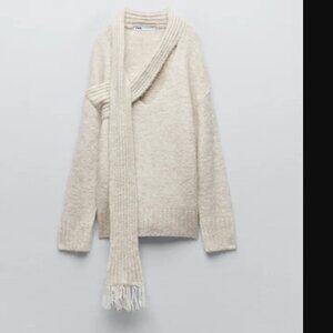 Sweater with scarf collar and long sleeves. V-neckline and long sleeves. Rib trim.