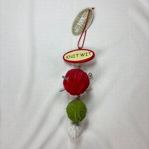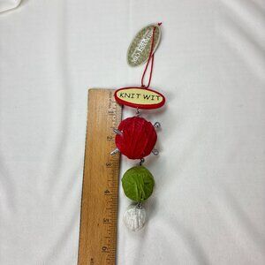 KNIT WIT Midwest CBK Dangly Red Green & White Yarn Christmas Tree Ornament