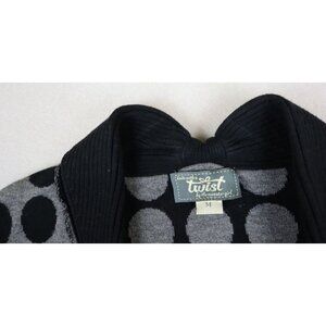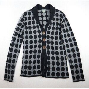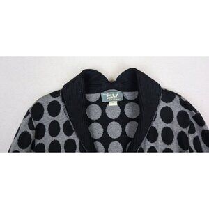 KNITS WITH A TWIST BY THE SWEATER GIRL - WOMEN'S GRAY BLACK POLKA DOT CARDIGAN M