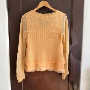 KNITTED AND KNOTTED Peach Open Weave Alpaca Blend Layered V Neck Sweater Medium