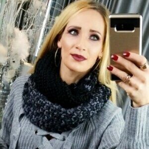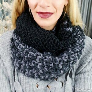 Black & gray Knitted infinity scarf, keep yourself warm all season long in this scarf or make it a thoughtful gift for the holidays!